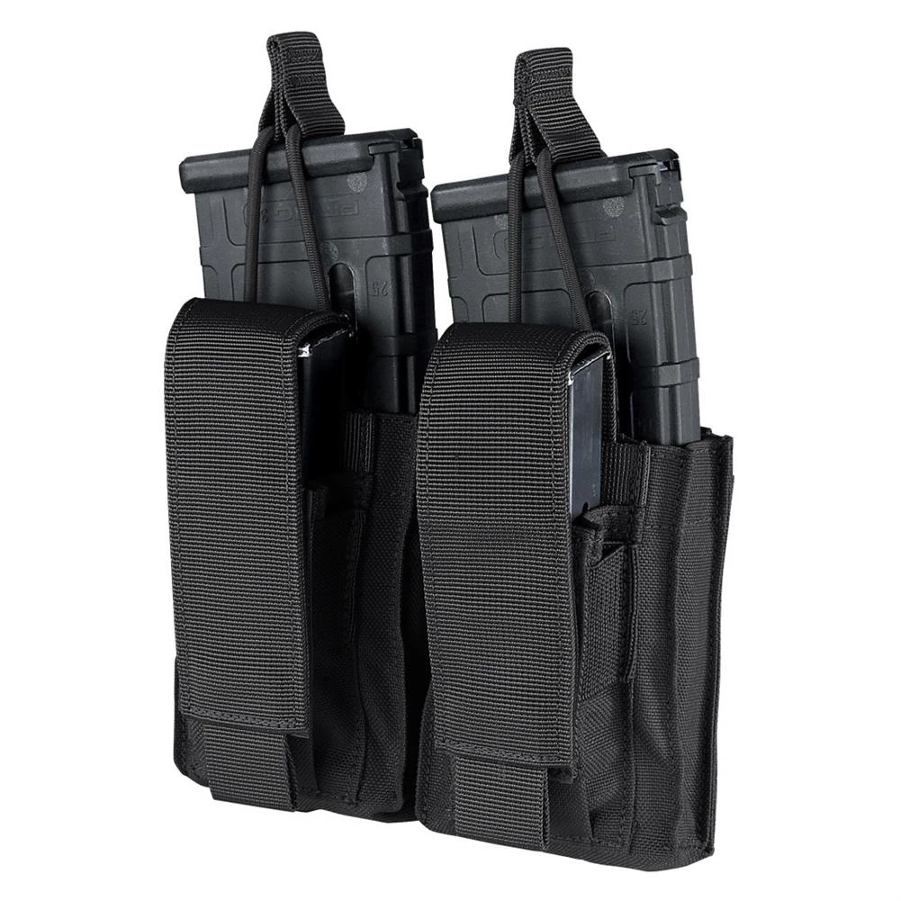 Utilize the Condor Outdoor Double Kangaroo Mag Pouch Gen II as a versatile accessory addition to your loadout. The result of suggestions to our popular magazine pouches from LE/MIL personnel have called for an upgrade to our overall open top exposure for high speed reloading/storage. This Condor mag pouch is designed to hold both AR/M4 and pistol magazines in one convenient modular attachment. The simple, effective design incorporates an open top bungee-retention and adjustable flap closures to ensure that your magazines stay securely stashed within, and can be deployed in a moment’s notice. The internal side of the pouch has been revamped to laser cut MOLLE to enhance durability and shave weight. The Condor Double Kangaroo Mag Pouch is compatible with MOLLE webbing, making it easy to attach in a variety of locations on your plate carrier or chest rig for rapid access.