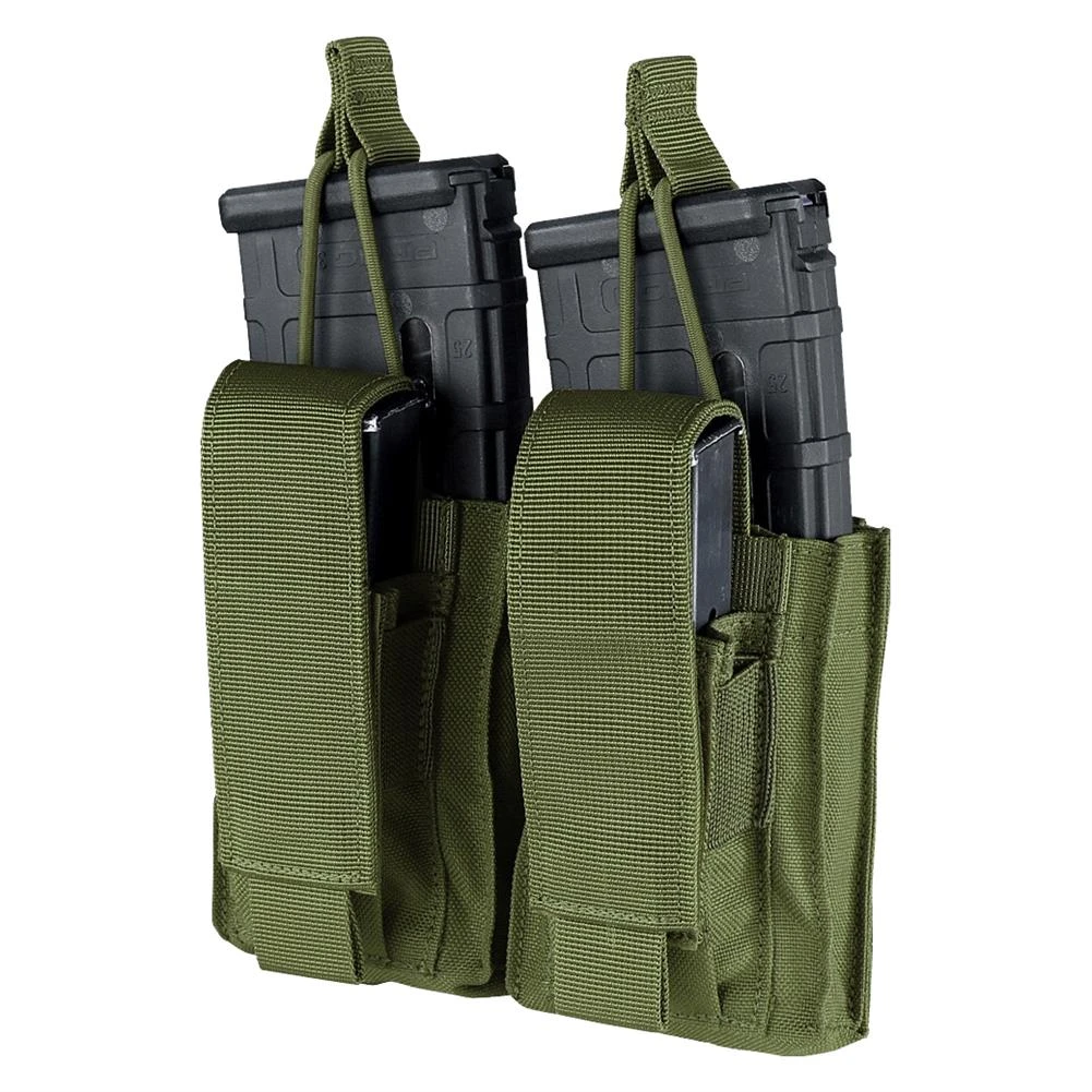 Utilize the Condor Outdoor Double Kangaroo Mag Pouch Gen II as a versatile accessory addition to your loadout. The result of suggestions to our popular magazine pouches from LE/MIL personnel have called for an upgrade to our overall open top exposure for high speed reloading/storage. This Condor mag pouch is designed to hold both AR/M4 and pistol magazines in one convenient modular attachment. The simple, effective design incorporates an open top bungee-retention and adjustable flap closures to ensure that your magazines stay securely stashed within, and can be deployed in a moment’s notice. The internal side of the pouch has been revamped to laser cut MOLLE to enhance durability and shave weight. The Condor Double Kangaroo Mag Pouch is compatible with MOLLE webbing, making it easy to attach in a variety of locations on your plate carrier or chest rig for rapid access.