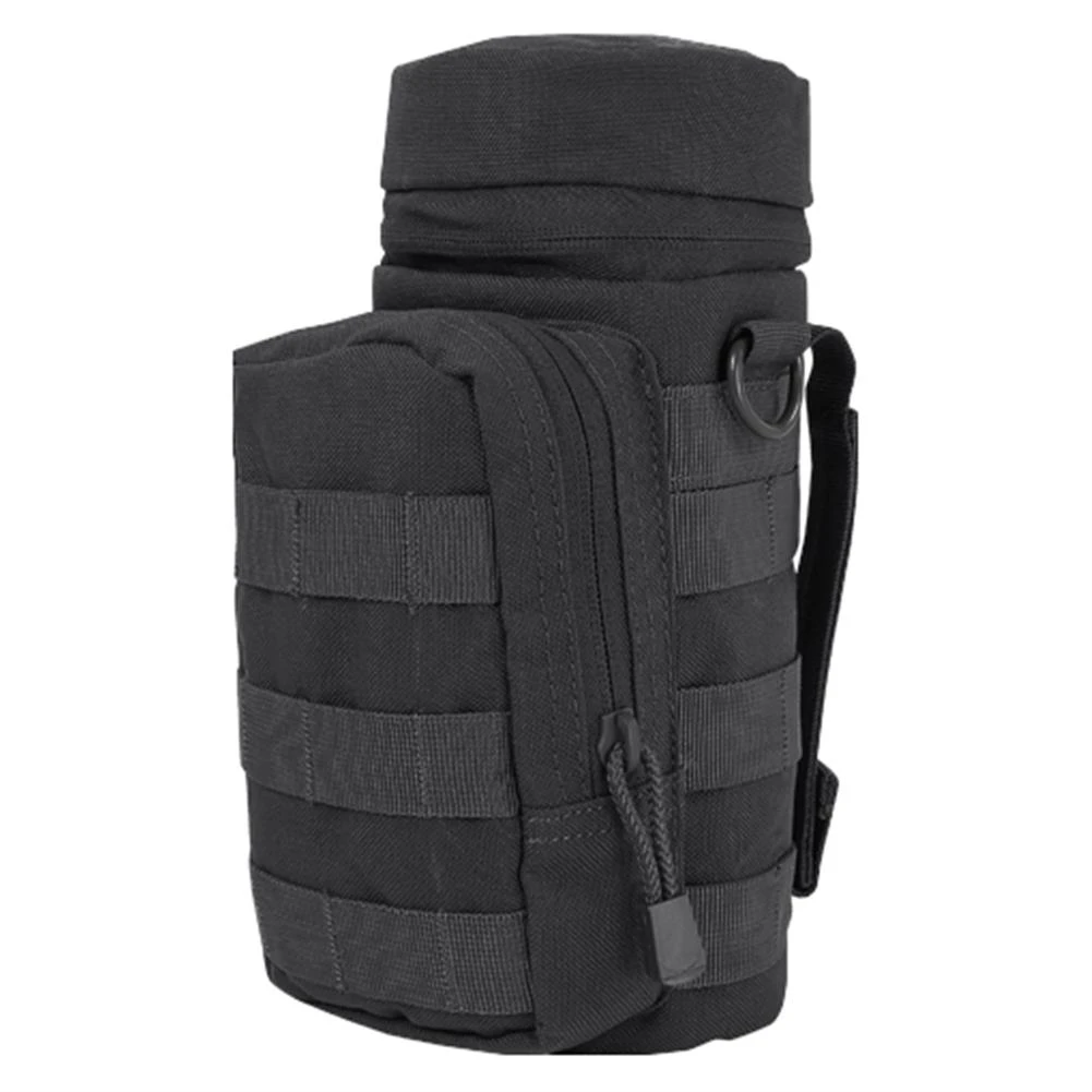 Stay hydrated with the Condor H2O Pouch. Whether mounted to your belt, shoulder or modular webbing, this pouch lets you easily carry your water bottle and allows you to get a quick drink without the need to slow down or stop thanks to a hydration tube pass-through. The hydration tube eliminates the need to open your water bottle to get a drink, which helps prevent debris from getting into your water. You can attach additional gear with webbing along the outside and a front utility pocket that can hold smaller accessories. The main compartment is fully padded to prevent damage to your bottle and the bottom features drainage grommets in the event of spills.