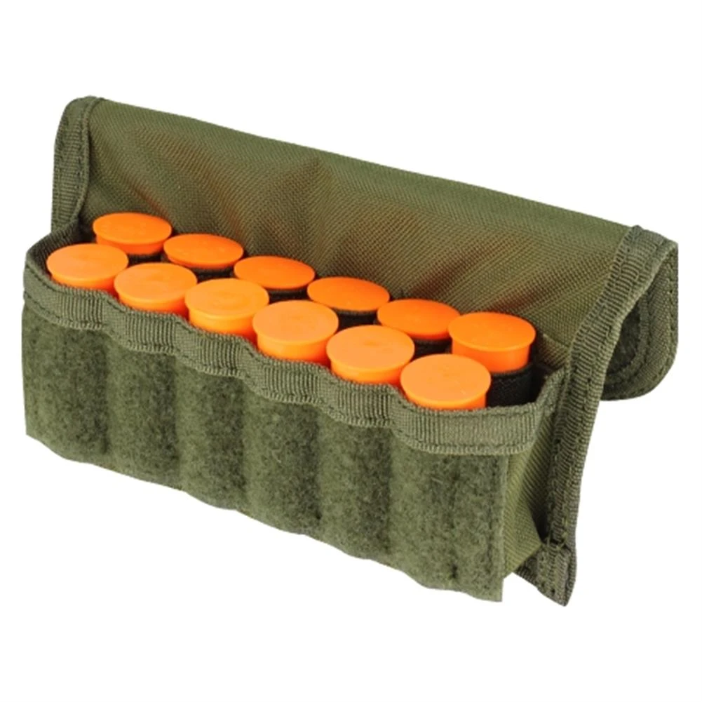 Keep plenty of extra shotgun ammunition close at hand with the Condor Shotgun Ammo Pouch. This compact pouch holds up to 12 shotgun rounds at a time, securing the shells with internal elastic webbing to prevent rattling or falling out. The hook and loop flap closure protects shells from outside hazards, while a front loop panel provides an attachment spot for patches. These flaps also make it easy to access your spare shotgun rounds, allowing you to minimize time spent reloading so you can focus on your objective. With it’s lightweight, durable construction, this pouch is an excellent addition to your loadout or hunting gear.
