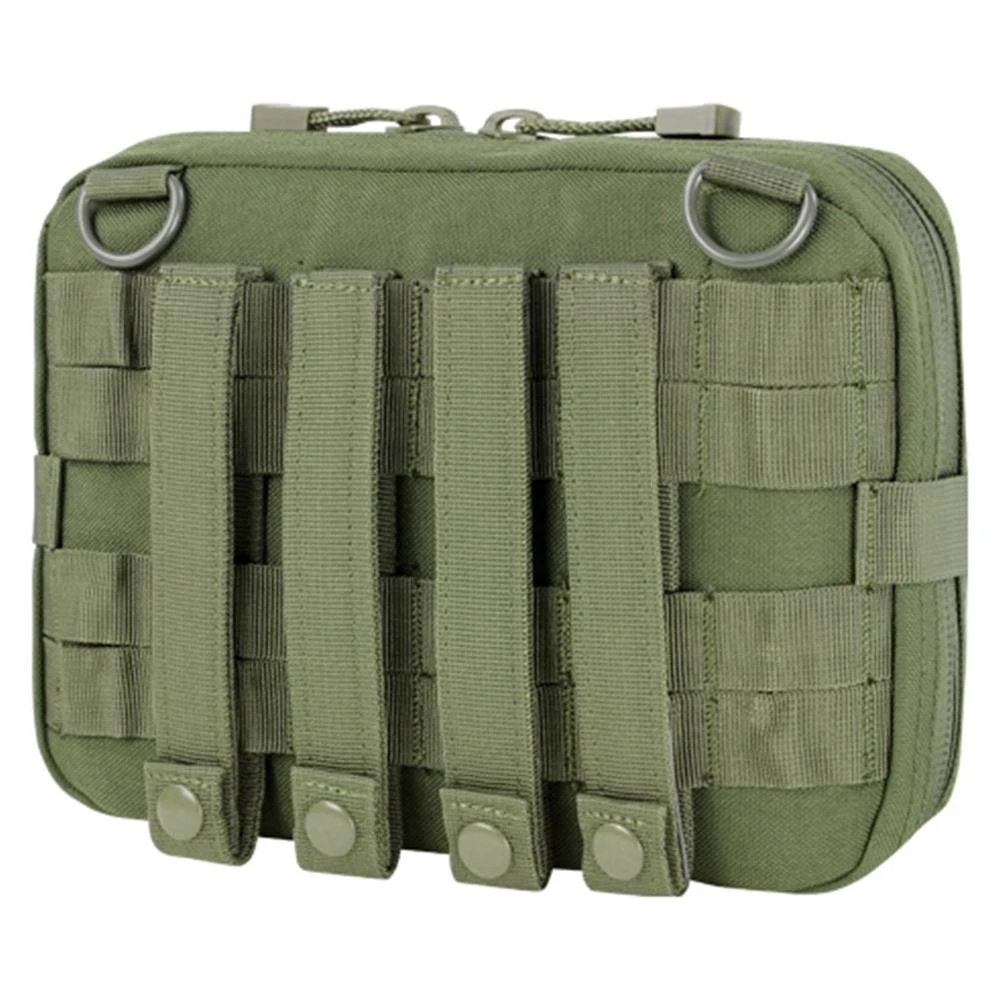 The Condor T&T Pouch may be small, but there’s enough room in this versatile utility pouch for all of your smaller accessories. Internal paracords allow the pouch to open at a 90 degree angle for a quick workstation or open completely flat for total accessibility. The interior contains a storage sleeve and zippered pocket, and each side has an internal organization panel for easy separation of your utilities. The back features two D-ring attachment points and four removable straps for secure webbing attachments and total customization of your pouch. This portable, low profile pouch is highly adaptable to your needs and storage requirements.