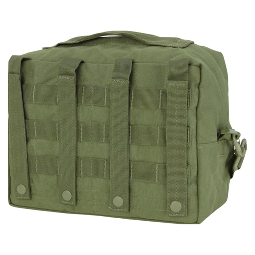 The Condor Utility Shoulder Bag makes it easy to store and organize all of your important accessories. With a spacious, zippered main compartment and three internal pockets, this bag keeps your cargo organized and easy to access. Heavy-duty web platforms on the front and back of the bag are compatible with modular attachments, and an additional loop field on the top secures name tape. A removable nylon shoulder strap and top grab handle offer multiple carrying options, while four fixed straps on the back use snaps for secure webbing attachments. If you’re in need of a versatile and reliable bag for your next journey, look no further.